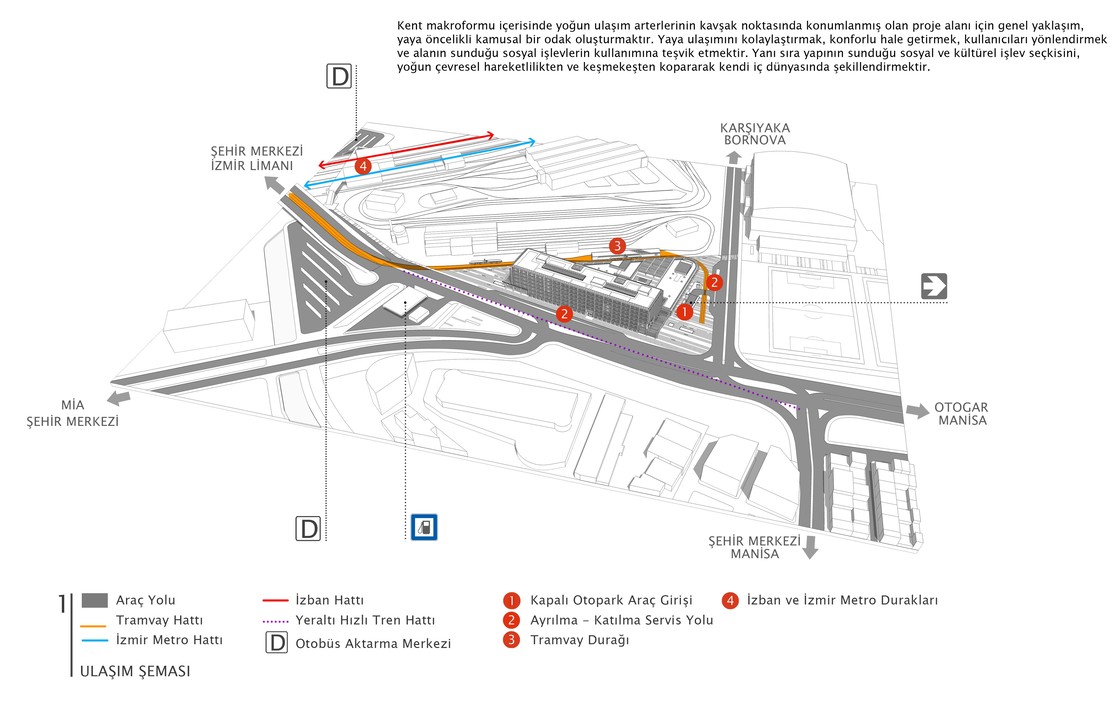 It is the design of the transportation units belonging to the administration within the framework of the need program, located within the boundaries of Konak District, separated as a Municipal Service Area in the development plan, at the node of Izmir City transportation and in the area within the "New City Center boundaries".