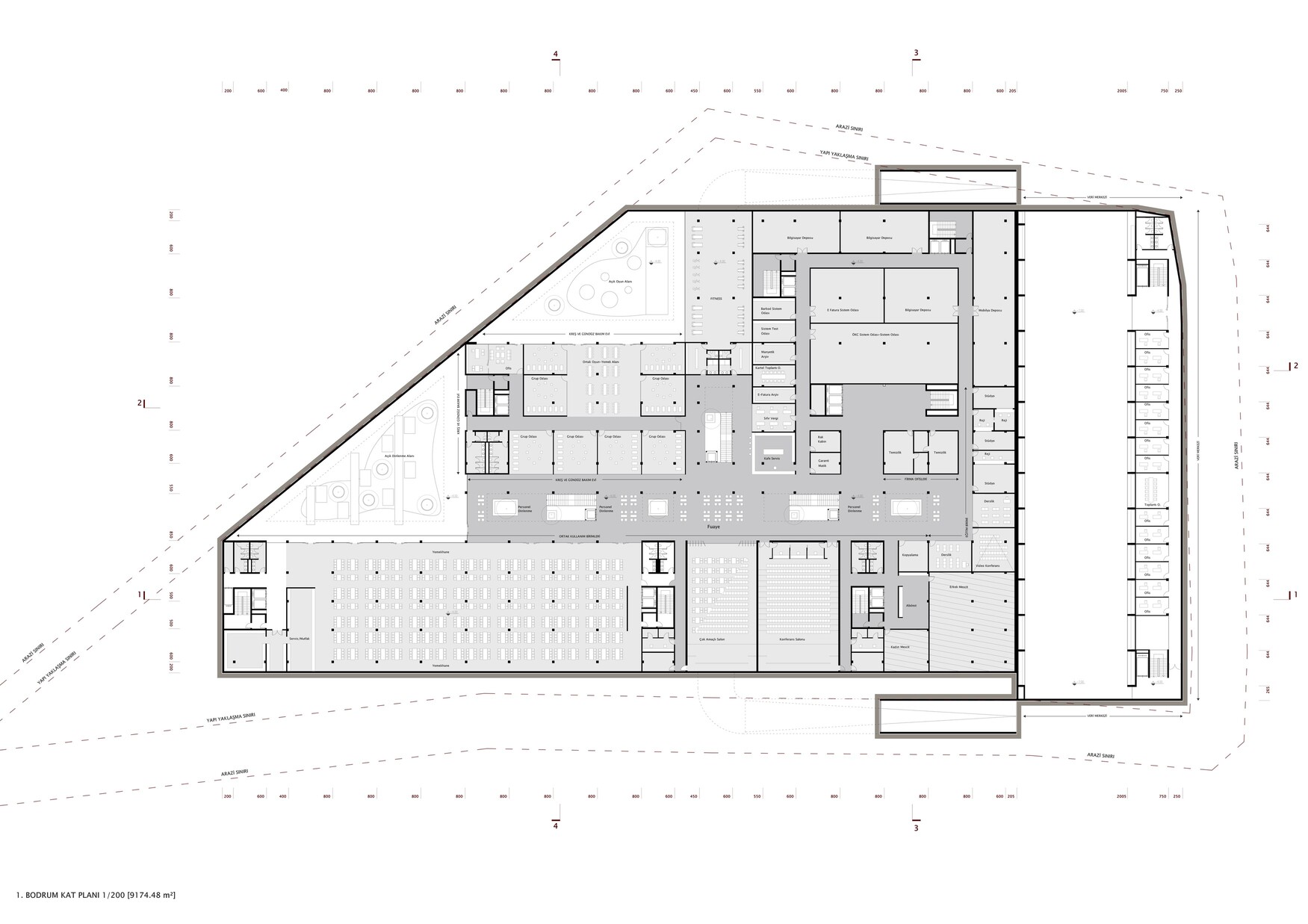 Parking lot (42.000 m²) / Data Center (6.800 m²) / Social Areas (6700 m²) / Office Areas (64.500 m²)