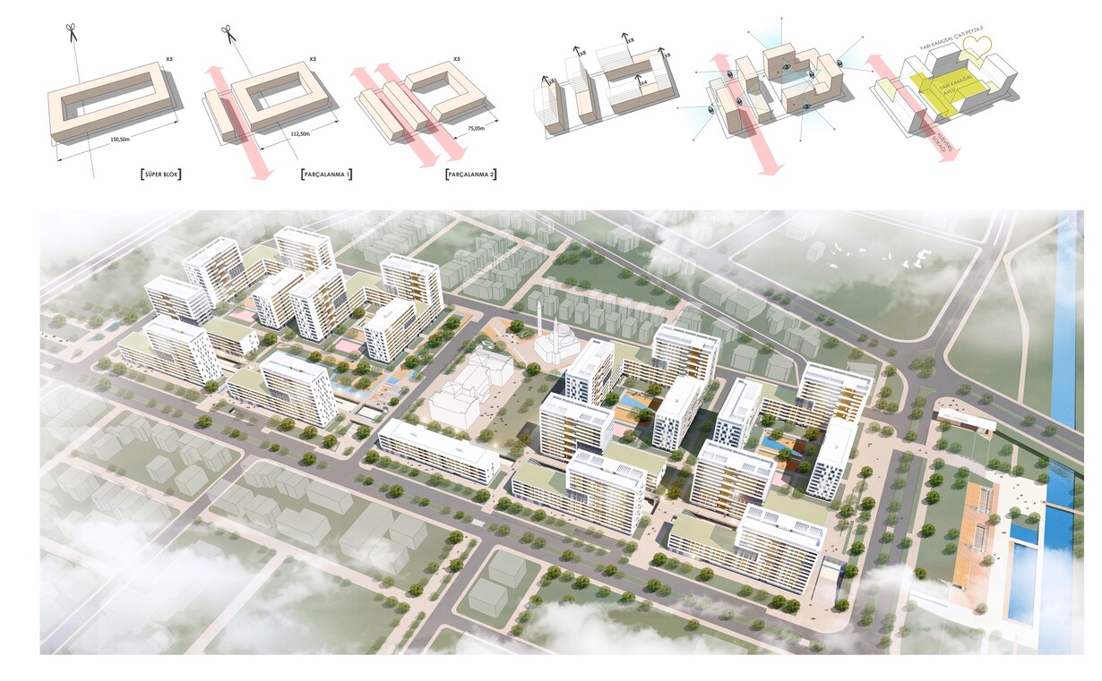 Housing (1536 units) / Trade (18.200 m²) / Social Facility (1400 m²) / Parking lot (1546 vehicles) / Total Construction Area: 294.500 m² / Open Areas (37.000 m²) / Green Area Arrangements (32.600 m²)